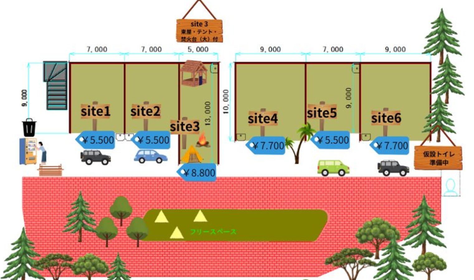 キャンプサイト、区画を増やしてリニューアルいたしました。